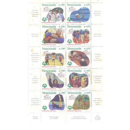 Etiquetas: VENEZUELA - 1999 - MINI FOLHA - OLIMPÍADAS - NOVO - COM PONTOS DE FERRUGEM