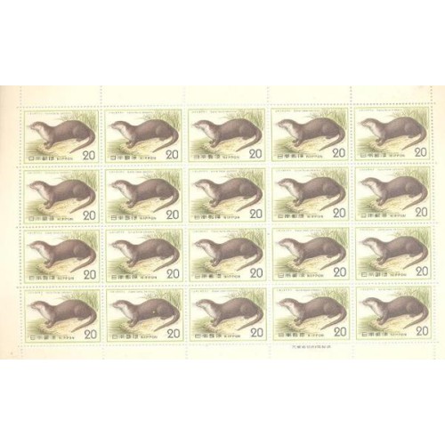 Etiquetas: JAPÃO - 1974 - PROTEÇÃO DA NATUREZA (LUTRA WHITELWYI) - FOLHINHA COM 20 SELOS MINT - Y 1115