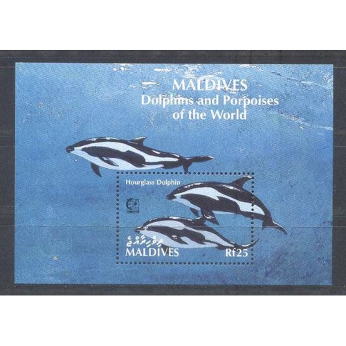 Etiquetas: MALDIVES - Y B-323 (1995) FAUNA MARINHA :SINGAPURA 93 ( EXPO. FILATÉLICA) HOURGLASS DOLPHIN - BLOCO MINT