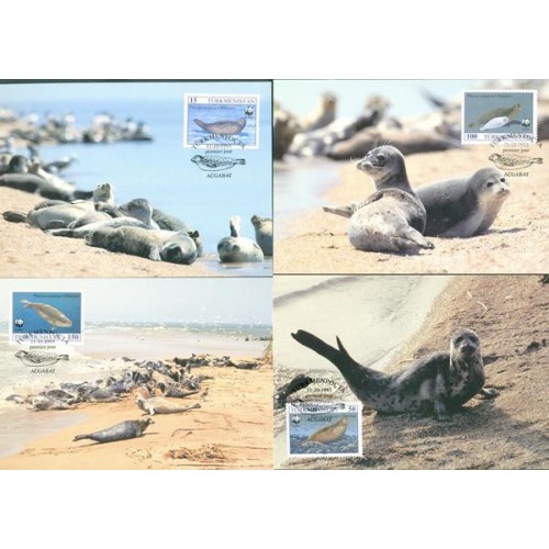 Etiquetas: TURCOMENISTÃO - 1993 - FAUNA MARINHA - FOCAS - SÉRIE COM 4 MÁXIMOS