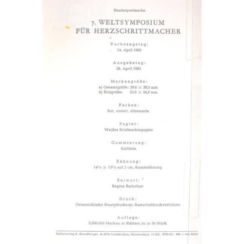 Etiquetas: ÁUSTRIA - 1983 - EDITAL - MEDICINA - PEQUENO EDITAL SELADO E CARIMBADO DO SELO