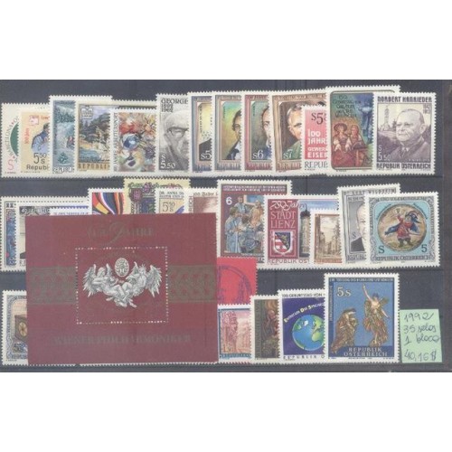 ÁUSTRIA - ANO COMPLETO - 1992 - MINT - 35 SELOS + 1 BLOCO - 40,10 EUROS