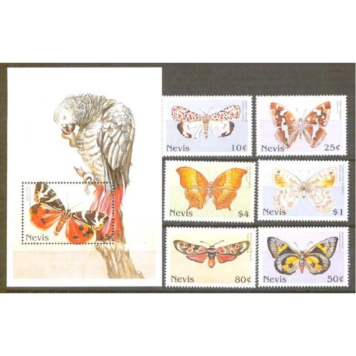 NÉVIS - BORBOLETA - 1 BLOCO + 6 SELOS