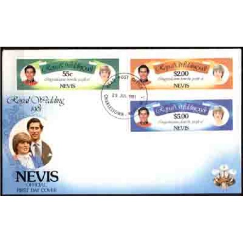 NEVIS FDC REALEZA - ANO 1981- CASAMENTO PRINCIPE CHARLES E LADY DIANA -SÉRIE 3SELOS