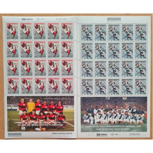 2001 - TIMES BRASILEIROS CAMPEÕES LIBERTADORES (6 FOLHAS) - MINT - SANTOS (C-2376V), VASCO (C-2401V), PALMEIRAS (C-2404V), GRÊMIO (C-2406V), FLAMENGO (C-2430) E SÃO PAULO (C-2438V) - RHM 1.250 UFS