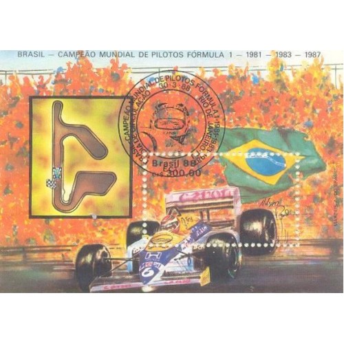 BL-075 - CARIMBO CBC - BRASIL CAMPEÃO MUNDIAL DE FÓRMULA 1 - 1988 - RHM R$ 35,00 (7 UFs X R$ 5,00)