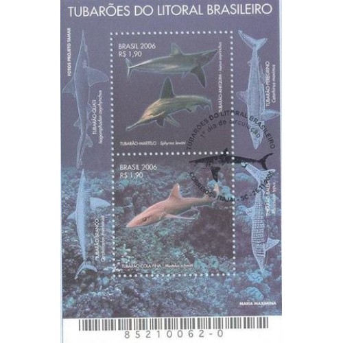 BL-144 - CARIMBO CBC - TUBARÕES DO LITORAL BRASILEIRO - 2006 - RHM R$ 40,00 (8 UFS X R$ 5,00)