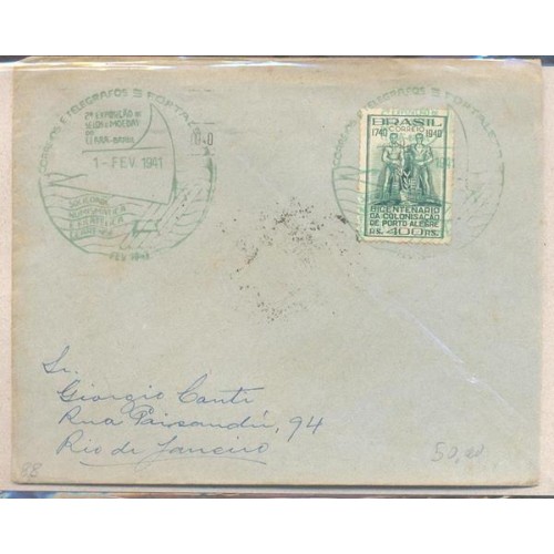 C-0156 - BICENTENÁRIO DE PORTO ALEGRE FRANQUIA ISOLADA 400 RÉIS - 1º PORTE INTERNO CEARÁ P/ RIO DE JANEIRO (CHEGADA NO VERSO) + CBC 2ª EXPOSIÇÃO DO CEARÁ (FRENTE) - RHM R$ 350,00 (70 X R$ 5,00)