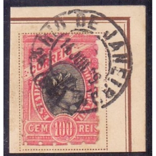 Etiquetas: R-084 - MADRUGADA REPUBLICANA - 100 RÉIS - ROSA E PRETO - DENTEAÇÃO GROSSA CARIMBO RIO DE JANEIRO 14/06/1889 - FRAGMENTO BILHETE POSTAL