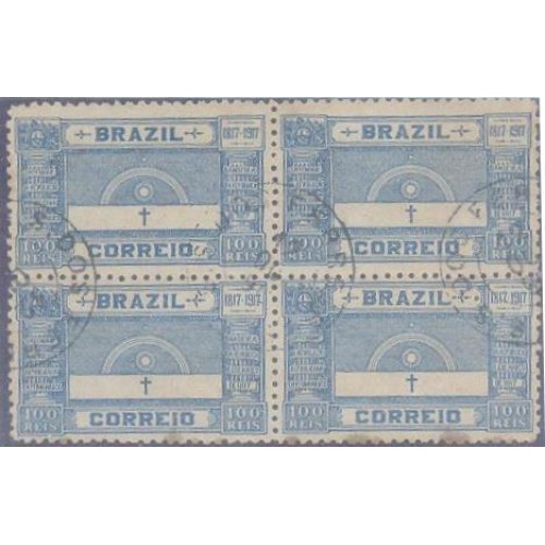 Etiquetas: C-0012 - 1917 - 100 RÉIS - CENTENÁRIO DA REVOLUÇÃO DE PERNAMBUCO - QUADRA - CARIMBADA - SEM GOMA - PONTOS DE OXIDAÇÃO