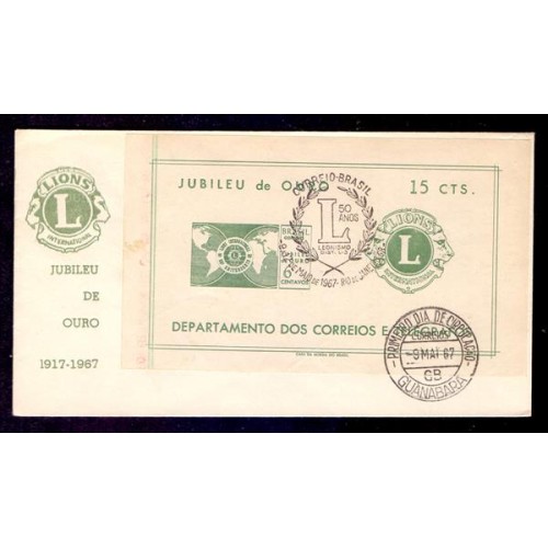FDC PARTICULAR - BLOCO `LIONS` - CARIMBO DE 1º DIA DE CIRCULAÇÃO - 1967