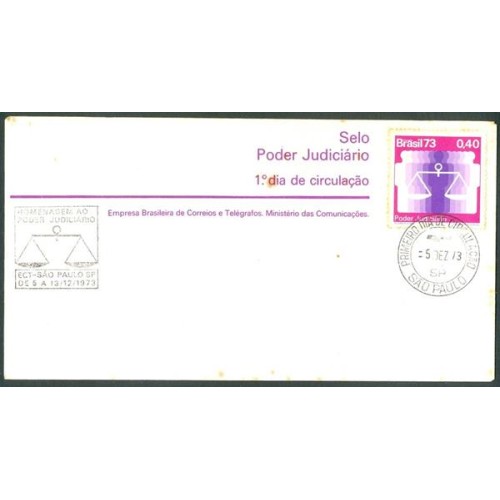 FDC-037 - 1973 - PODER JUDICIÁRIO - CARIMBO CBC + 1º DIA BAHIA - COM MANCHINHAS DE FERRUGEM NO SELO E NO ENVELOPE - RHM R$ 135,00 (27 UFS X R$ 5,00)