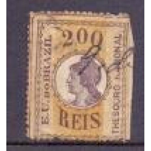 FILATELIA FISCAL - SELO - THESOURO NACIONAL - LEVE CARIMBO - ASSINATURA - 200 RÉIS