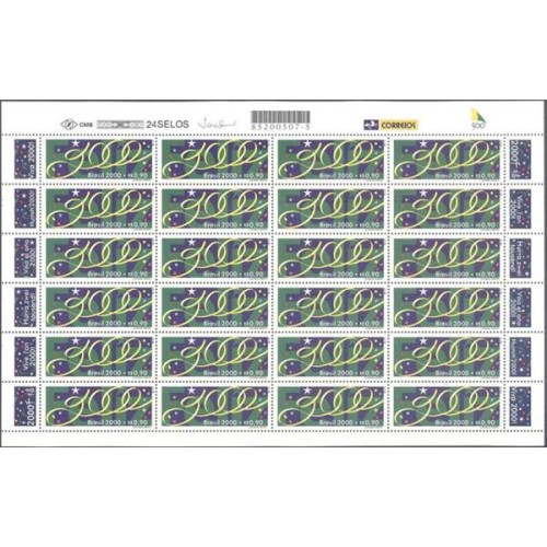 Etiquetas: C-2237 - 2000 - FELIZ 2000 VIVA! FOLHA COM 24 SELOS - RHM R$ 168, 00 (33, 60 UFS X R$ 5, 00)