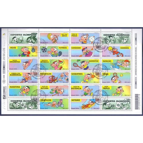 Etiquetas: C-2301/2340 - FOLHA - CARIMBO CBC - GOMADA - ESPORTES OLÍMPICOS - TURMA DA MÔNICA - 2000 - RHM R$ 480, 00 ( 96 UFS X R$ 5, 00)