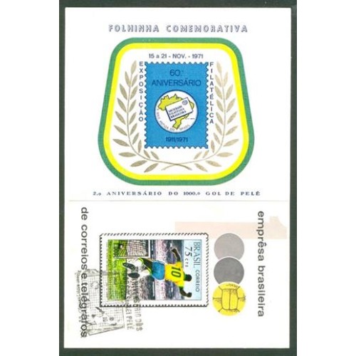 Etiquetas: C-0658 - FUTEBOL - 1970 - MILÉSIMO GOL DE PELÉ - FOLHINHA COMEMORATIVA 2º ANIVERSÁRIO COM BLOCO