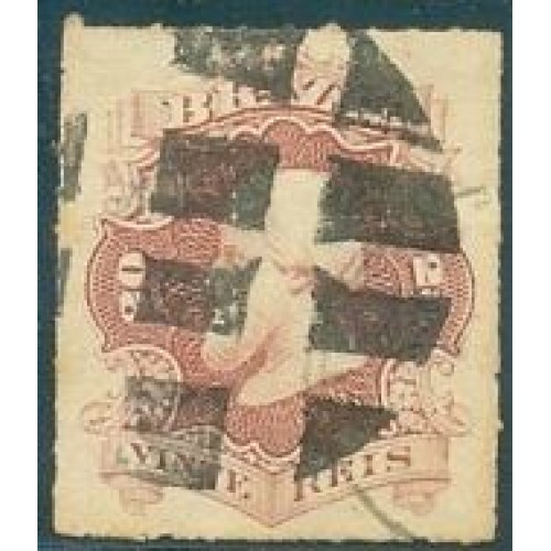 Etiquetas: I-31 - 1876 - DOM PEDRO II - "PERCÉ" - 20 RÉIS - CASTANHO LILÁS - CARIMBO MUDO - CHARNEIRA