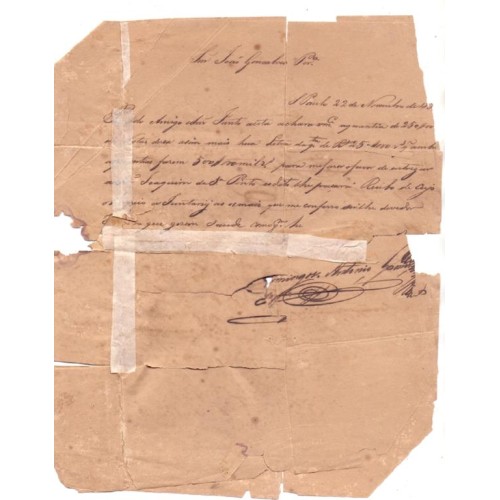 PRÉ-FILATÉLICO - CIRCULADO SÃO PAULO - RIO DE JANEIRO 22 DE ABRIL 1832 - CARIMBO SÃO PAULO (P-SP-48P) - TAXADO 150 RÉIS - MAU ESTADO - TEXTO COMPLETO DE DOMINGOS ANTONIO GOMES PARA JOÃO GONÇALVES PEREIRA COMUNICADO REMESSA DE PAGAMENTO