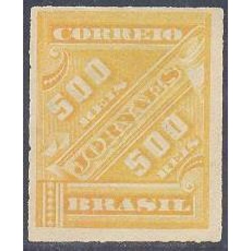 Etiquetas: J-07 - 1889 - CIFRAS OBLÍQUAS - LARANJA - 500 RÉIS - NOVO - SEM GOMA