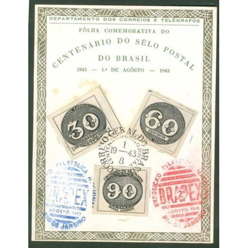 F-A-03 - CENTENÁRIO DO SELO POSTAL DO BRASIL - 1943 - CARIMBO CBC - RHM R$ 400,00 (80 UFS X R$ 5,00)