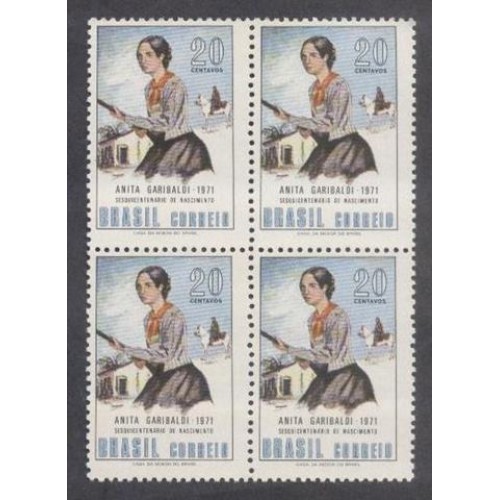 Etiquetas: C-0704 - QUADRA - NOVA - GOMADA - SESQUICENTENÁRIO DE ANITA GARIBALDI - 1971