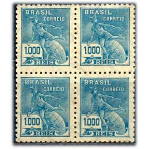 Etiquetas: R-289 - 1931/34 - SÉRIE VOVÓ FILIGRANA K CRUZEIRO - 1000 RÉIS TURQUESA MERCÚRIO E GLOBO - QUADRA - MINT