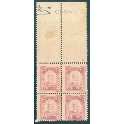 R-334 - 1849/1923 - RUY BARBOSA - 1000 RÉIS - VINHO ESCURO - FILIGRANA "CASA DA MOEDA" HORIZONTAL - PAPEL ESPESSO - DENT. 11-11.5 - QUADRA - NOVA - GOMADA - LINDÍSSIMA - RHM R$ 600,00 (120 UFs X 5,00)