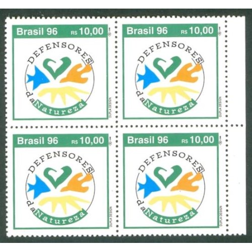 SP-01 - QUADRA - NOVA - GOMADA - COM MARCA DE 1 DOBRA E UMA MANCHA NO VERSO - 1996 - DEFENSORES DA NATUREZA - RHM R$ 800,00 (160 UFS X R$ 5,00)