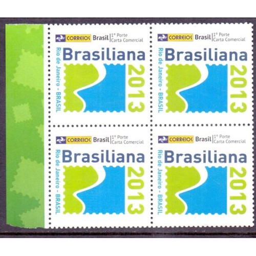 Etiquetas: PB-001 - 2013 - MINT - QUADRA - BRASILIANA LOGO 1 - RIO DE JANEIRO - SELO PERSONALIZADO COM LOGO ANTIGO DOS CORREIOS