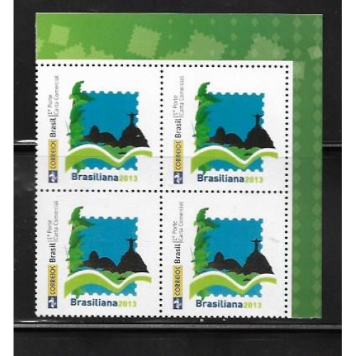 Etiquetas: PB-002 - 2013 - QUADRA - MINT - BRASILIANA LOGO 2 - RIO DE JANEIRO - SELO PERSONALIZADO COM LOGO ANTIGO DOS CORREIOS