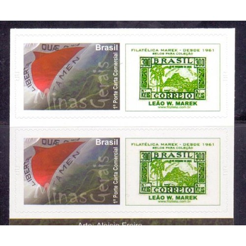 Etiquetas: C-3410 - 2015 - MINAS GERAIS - BANDEIRA - ADESIVO - FORMATO QUADRA - VINHETA MAREK
