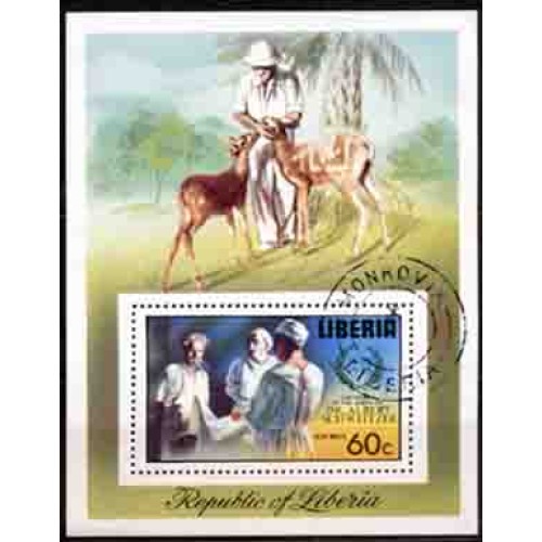 LIBÉRIA - ANO 1975 - CENTENÁRIO DO NASCIMENTODO DR. ALBERT SCHWEITZER BLOCO USADO