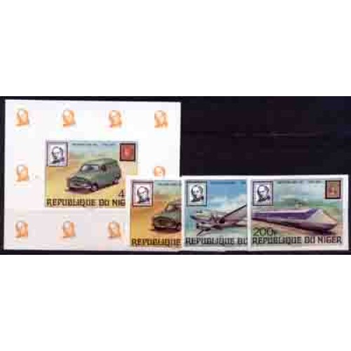 NIGER ROWLANDHILL - ANO 1979- HOMENAGEM A SIR ROWLAND HILL - TRANSPORTRESCARRO, TREM E AVIÃO - BLOCO E 4 SELOS NÃO DENTEADOS - FALTA 1 SELO PARA A SÉRIE SER COMPLETA
