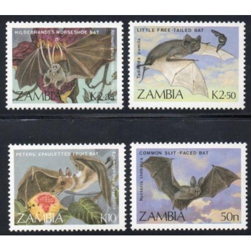 ZÂMBIA - 1989 - 461/464 - 4 VALORES - FAUNA - MORCEGOS