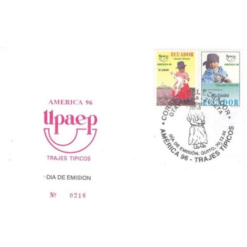 Etiquetas: EQUADOR - 1996 - FDC - SÉRIE AMÉRICA UPAEP 1996 - TRAJES TÍPICOS: CRIANÇAS VESTIDAS COM TRAJES TÍPICOS - SÉRIE 2 SELOS SOBRE FDC C/ LEGENDA UPAEP 96 - Y 1373/1374