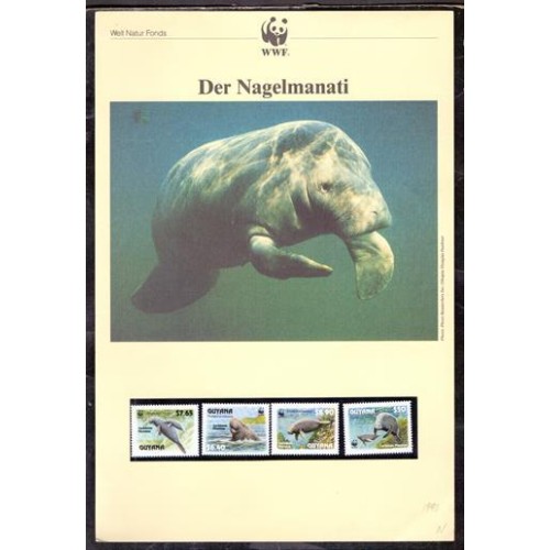 GUIANA - FAUNA - O PEIXE-BOI PREGO - CARTELA TIPO EDITAL COM 4 SELOS E TODAS AS INFORMAÇÕES