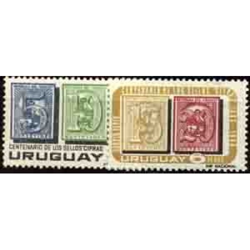 Etiquetas: URUGUAY - ANO 1967 CENTENÁRIO DO SELO - REPRODUÇÃO DE SELOS - LINDA SÉRIE COM 2 SELOS MINT
