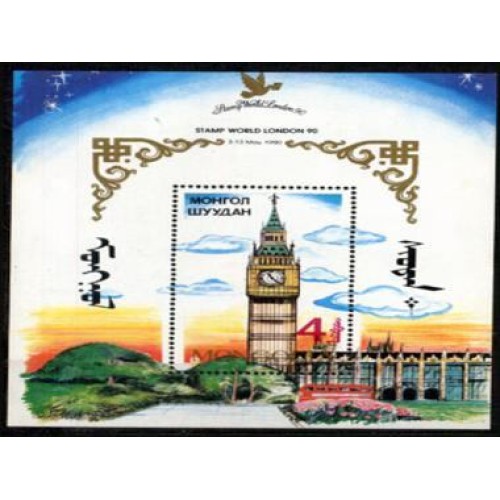 Etiquetas: MONGÓLIA - BLOCO - Y B 141 (1990) - EXPO FILATELICA LONDON 90 - BLOCO MINT