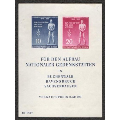 ALEMANHA DDR - 1955 - BLOCO 05 - 10º ANIVERSÁRIO DA LIBERTAÇÃO DOS CAMPOS DOS DEPORTADOS