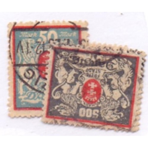 Etiquetas: DANZIG - 1923 - USADO - BRASÃO - CONJUNTO C/ 5 SELOS - YT-102+105+110+111+115