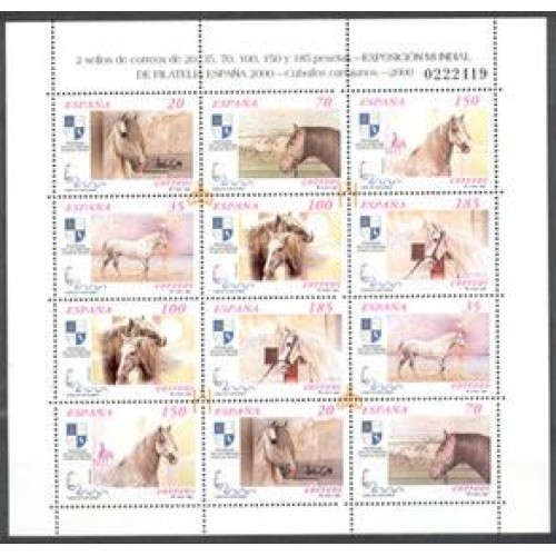 Etiquetas: ESPANHA - CAVALO - EXPOSIÇÃO MUNDIAL DE FILATELIA ESPANHA 2000 (Yt. 3290/95) FOLHINHA