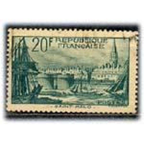 Etiquetas: FRANÇA - Y394 (1938)-SÉRIE TURÍSTICA 20F VERDE, PORTO DE SAINT MALO, EMBARCAÇÕES CARIMBO LEVE - ANO 2013