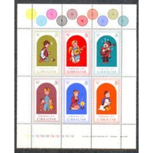 GIBRALTAR - NATAL - Y 323/328 (1975) - DESENHOS DE RYMAN - CRIANÇAS, ANJOS, INSTRUMENTOS MUSICAIS - SERIE 6 SELOS MINT EM FOLHINHA