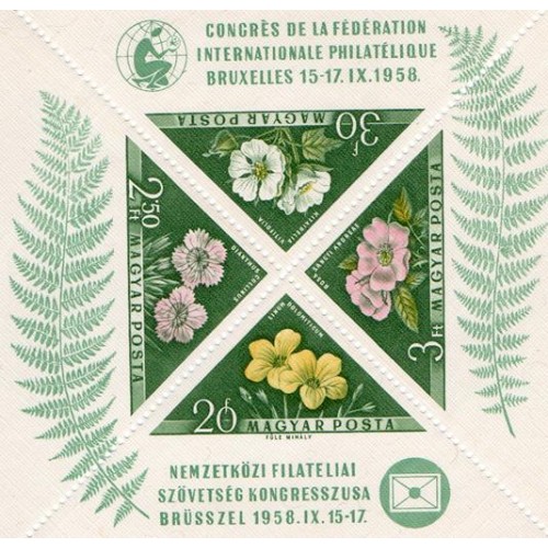 Etiquetas: HUNGRIA - 1958 - BLOCO COM 4 VALORES - FLORA - FLORES - CONGRESSO DE FILATELIA