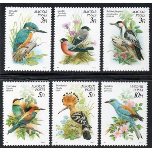 HUNGRIA - 1990 - 3257/3262 - SÉRIE COM 6 SELOS - FAUNA - PÁSSAROS - ESPÉCIE EM EXTINÇÃO