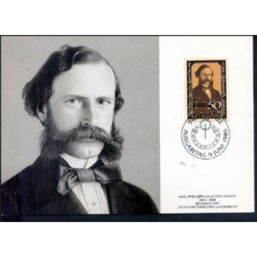 Etiquetas: LIECHTENSTEIN - MAXIMO POSTAL COM O SELO Y 843 (1986) - RETRATO DE KARL FREIHERR HAUS VON HAUSEN FUNDADOR DO BANCO DE ESTADO (125 ANOS DO BANCO)