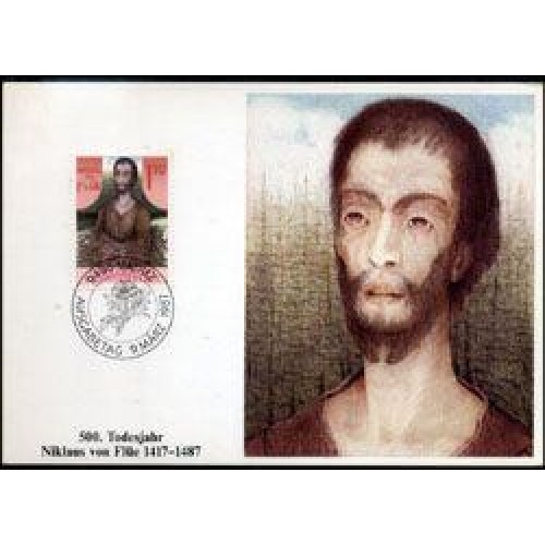 Etiquetas: LIECHTENSTEIN - MAXIMO POSTAL COM O SELO Y 861 (1987) - 500 ANOS DA MORTE DE NIKLAUS VON FLUE