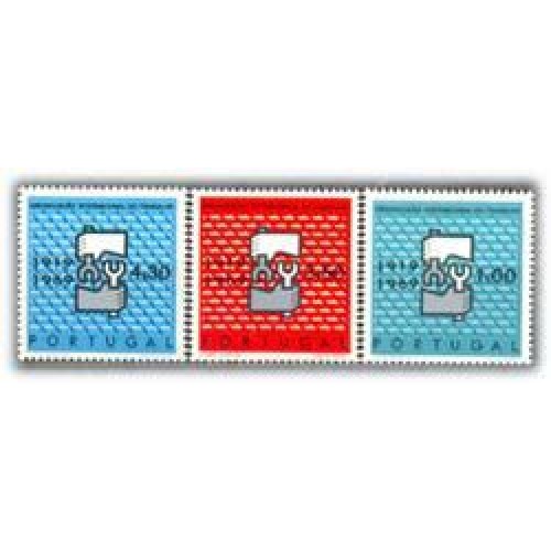 PORTUGAL - Y1057/59 (1969)-CINQUENTENÁRIO DA ORGANIZAÇÃO INTERNACIONAL DO TRABALHO,SÉRIE COM 3 SELOS NOVOS COM MARCA DE CHARNEIRA - ANO 2013
