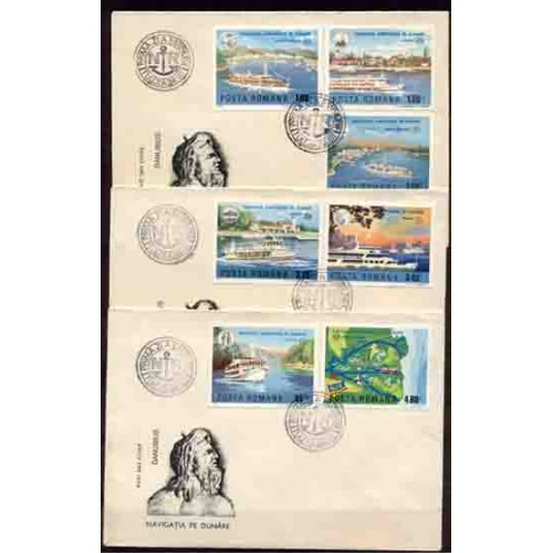 ROMÊNIA - FDCs ANO 1977 - NAVEGAÇÃO PELO RIO DANÚBIO - NAVIOS DE PASSAGEIROS - 3FC LINDA SÉRIE