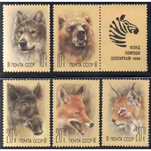 RÚSSIA - 1988 - 5558/5562 - SÉRIE COM 6 SELOS - FAUNA SELVAGEM - 5,25 EUROS